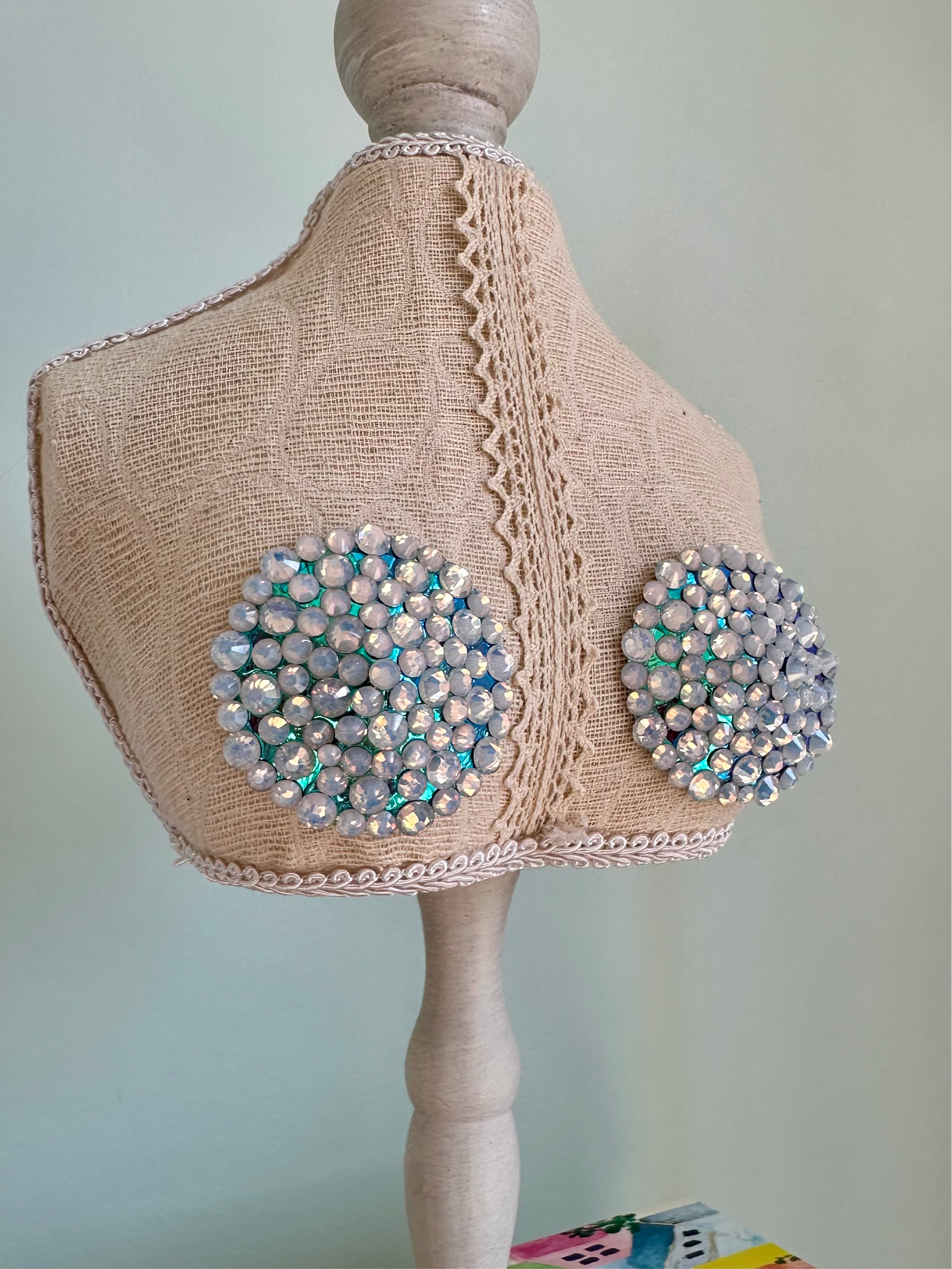 Personalize your burlesque routine with these Birthstone pasties! Handmade, vegan leather pasties sparkle with intricate designs of crystal rhinestones No worries if things get a little messy—the leatherette material makes for easy cleaning and reuse!
